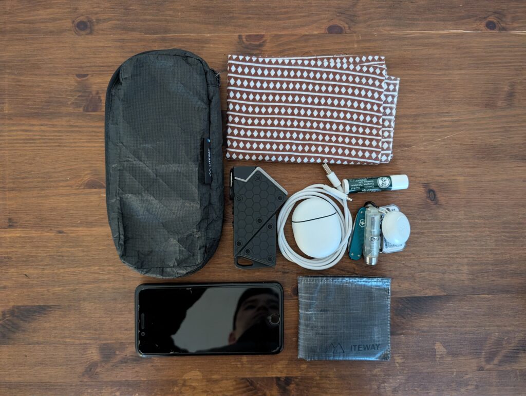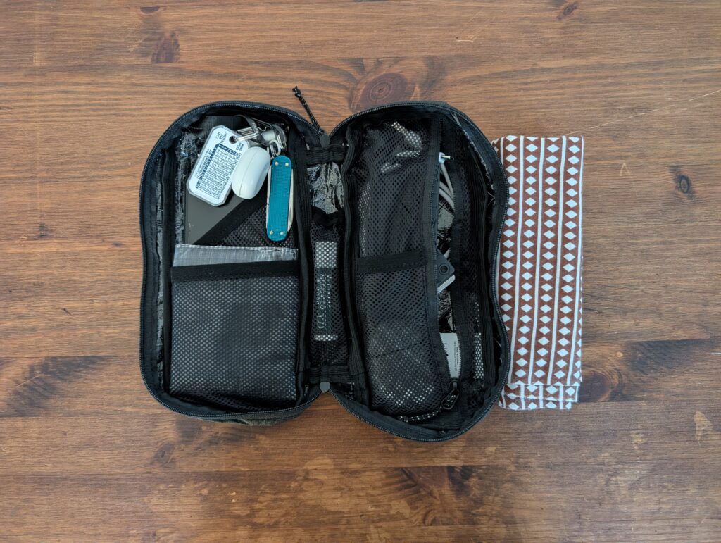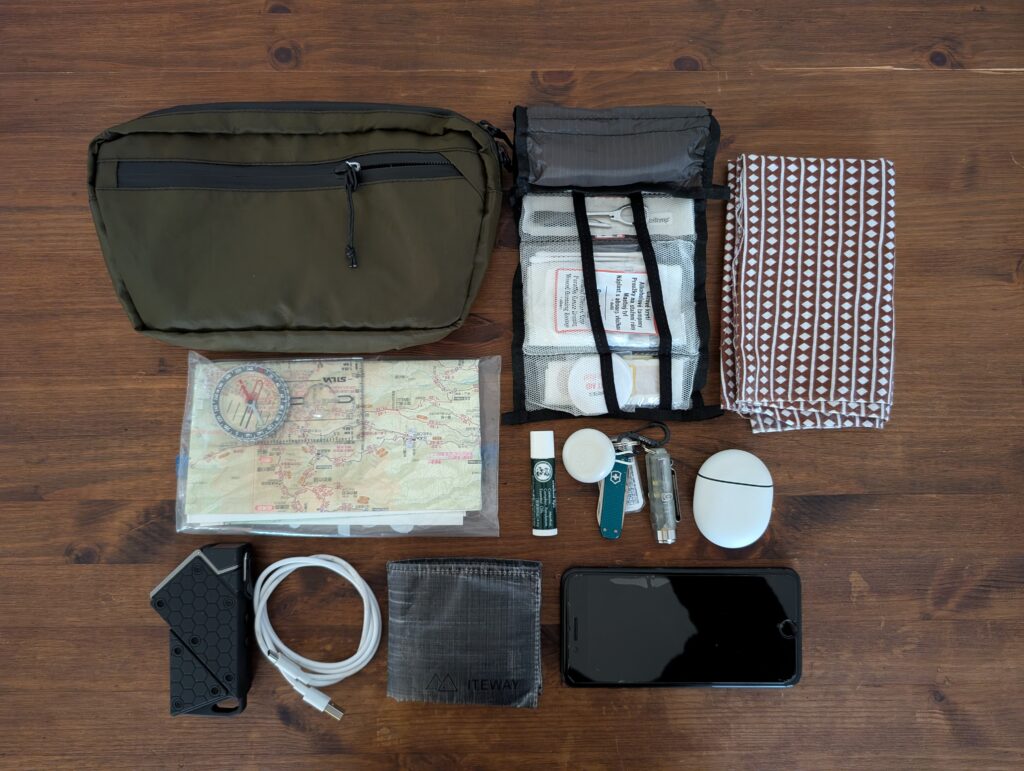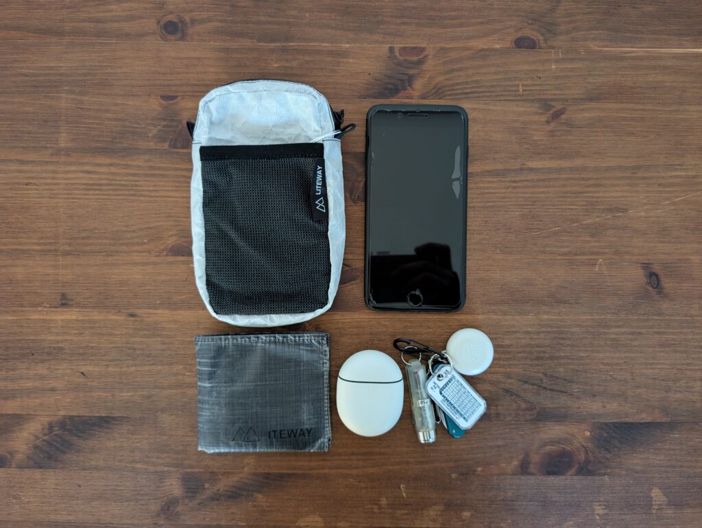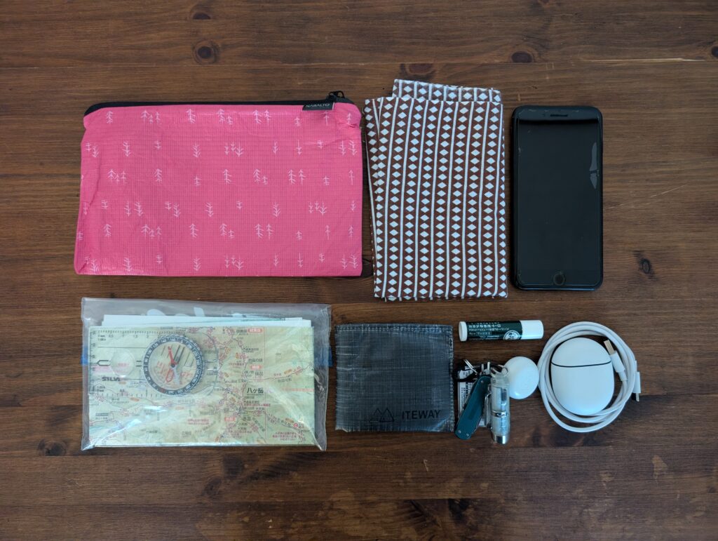 TRAVEL WALLETは小さめのサコッシュで、後述するPOKKIE PACKとスペックとしては同じ収納力ですが、3つのジッパー付きポケット+キーリングで構成されているため、TRAVEL WALLETの方が使い勝手は良いと思います。欠点としてサコッシュは身体との一体感が弱く、身体を動かす山行中はバタバタと動くのが気になる方も多いいため、山行より街中の方が活躍できると思います。なお、私はデザインや機能性に惚れ、普段使いで愛用しています!