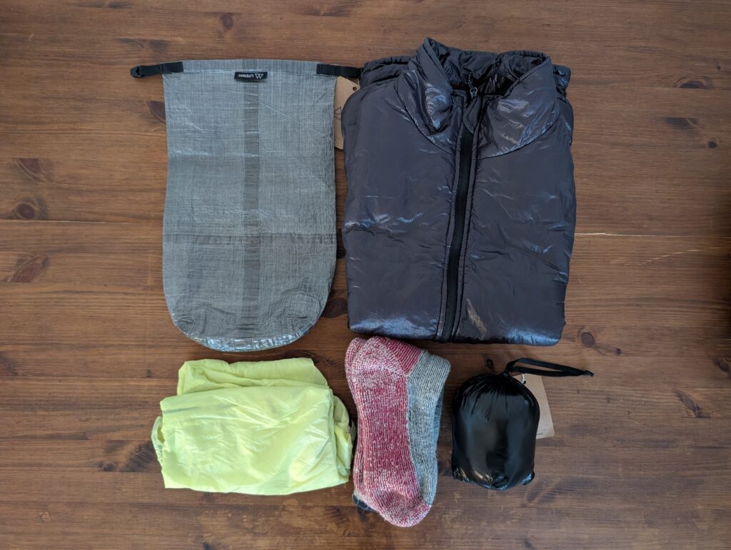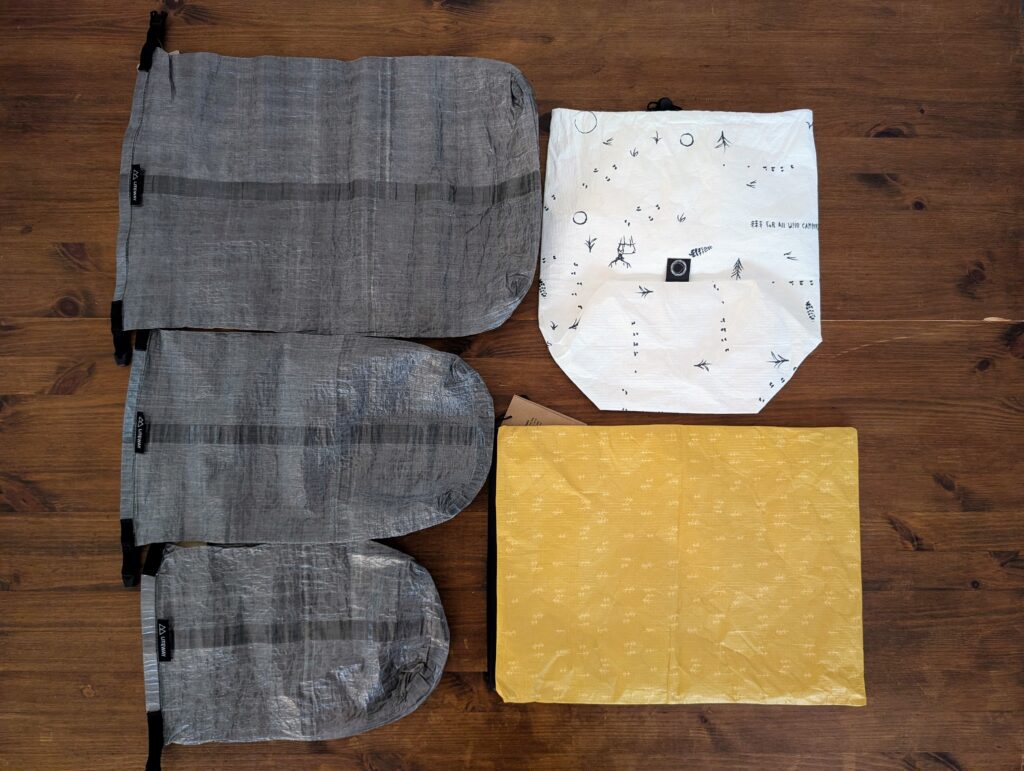 LITEBAG DCF 6Lは、LITEBAGの中で最も売れるモデルです。サイズ感と収納力のバランスがいいのが要因だと思います。高機能化繊ベストとウィンドシェル以外に、厚手のソックスやテントシューズも収納できました。後述のNATRIKAと比べると収納力は低いですが、衣類を濡れる事から確実に守ってくれるので頼りになります。