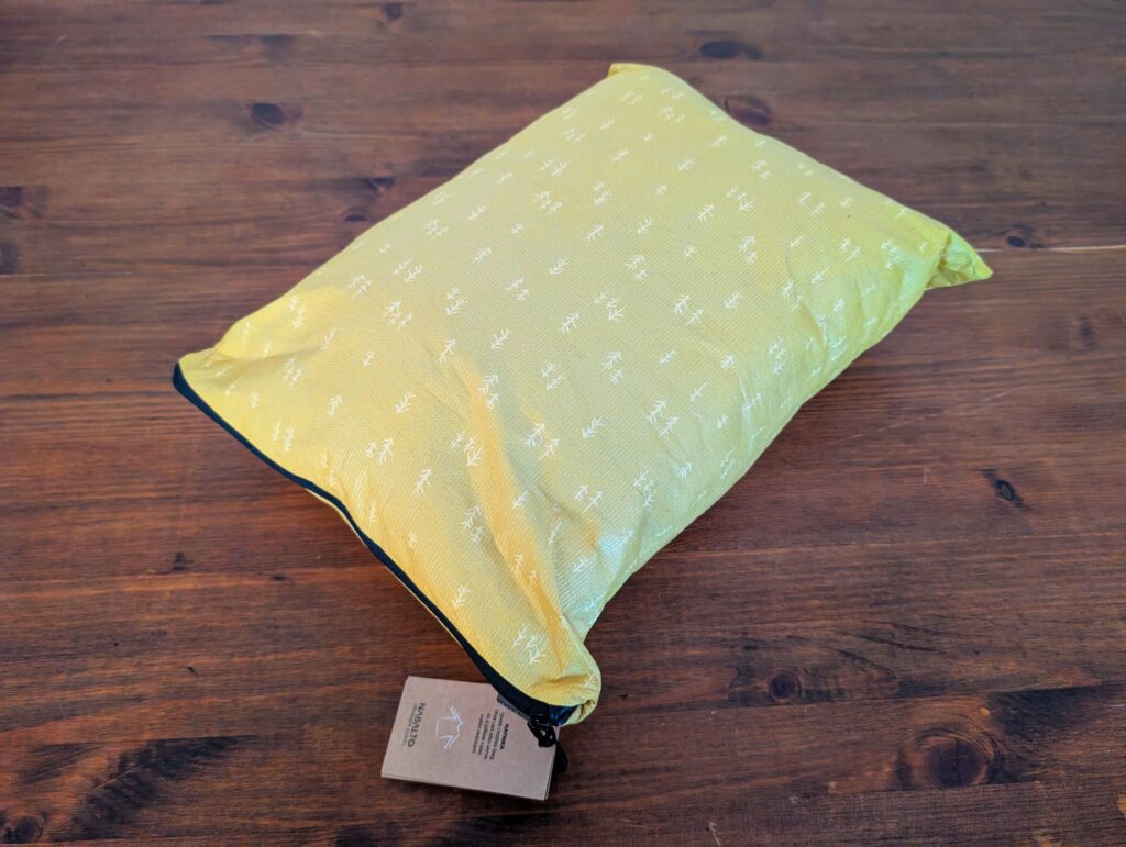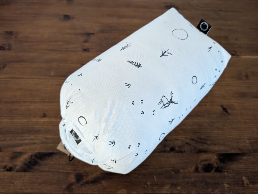 NATRIKAは、衣類の収納を目的に作られています。サイズ的に枕やクッションとして使うにも最適です。収納力はシンプルな作りも相まって、高機能化繊ベストやダウンパンツ、ウィンドシェルを簡単に収納できました。
